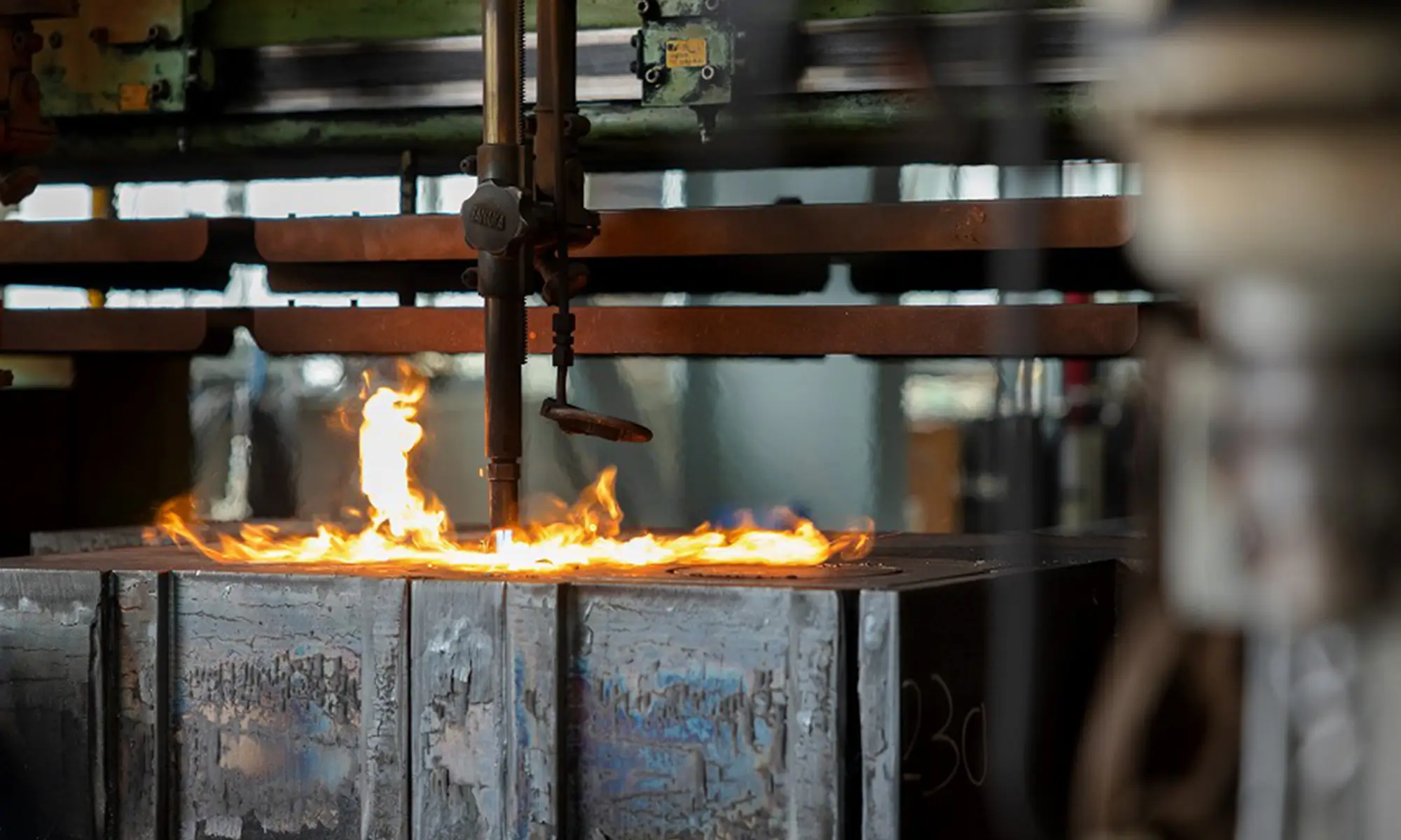 燃焼する際の熱を利用して鉄板を切断する方法です。